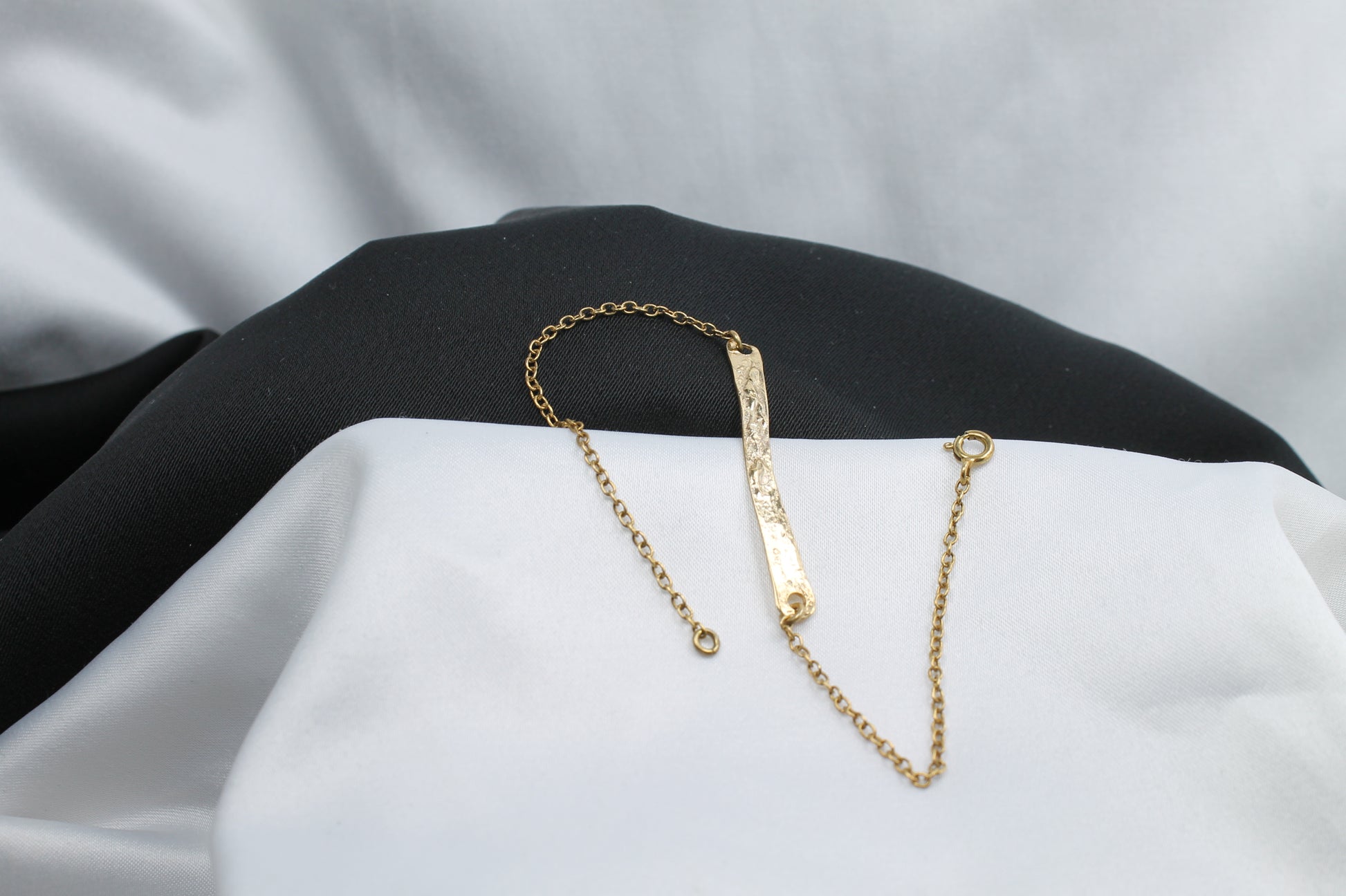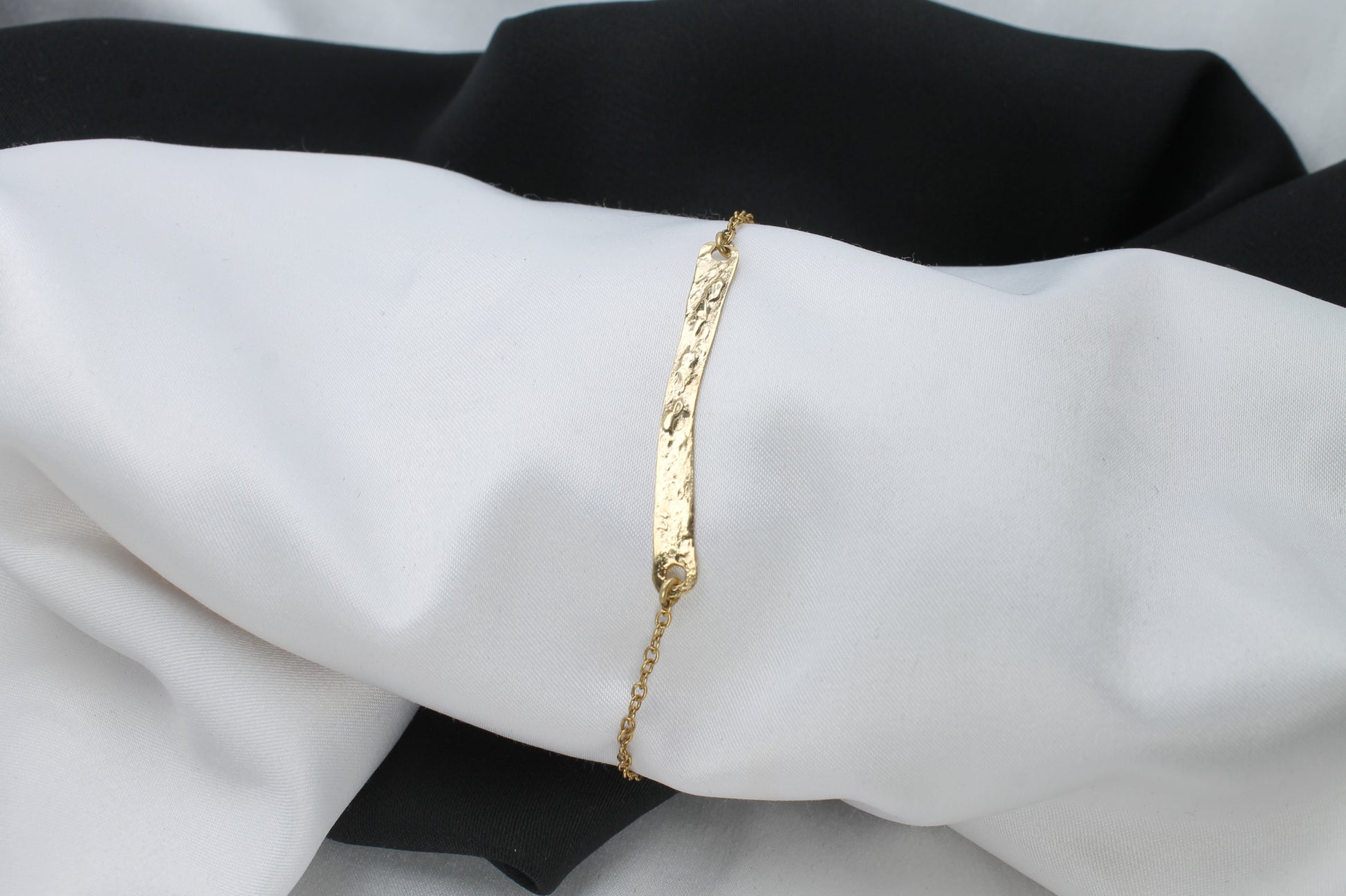 Βραχιόλι χειροποίητο τύπου ταυτότητας από ασήμι, με γυαλιστερή αλυσίδα, επιχρυσωμένο 18k, σφυρηλατημένο , Μοντέρνο Σχέδιο (VR0375)