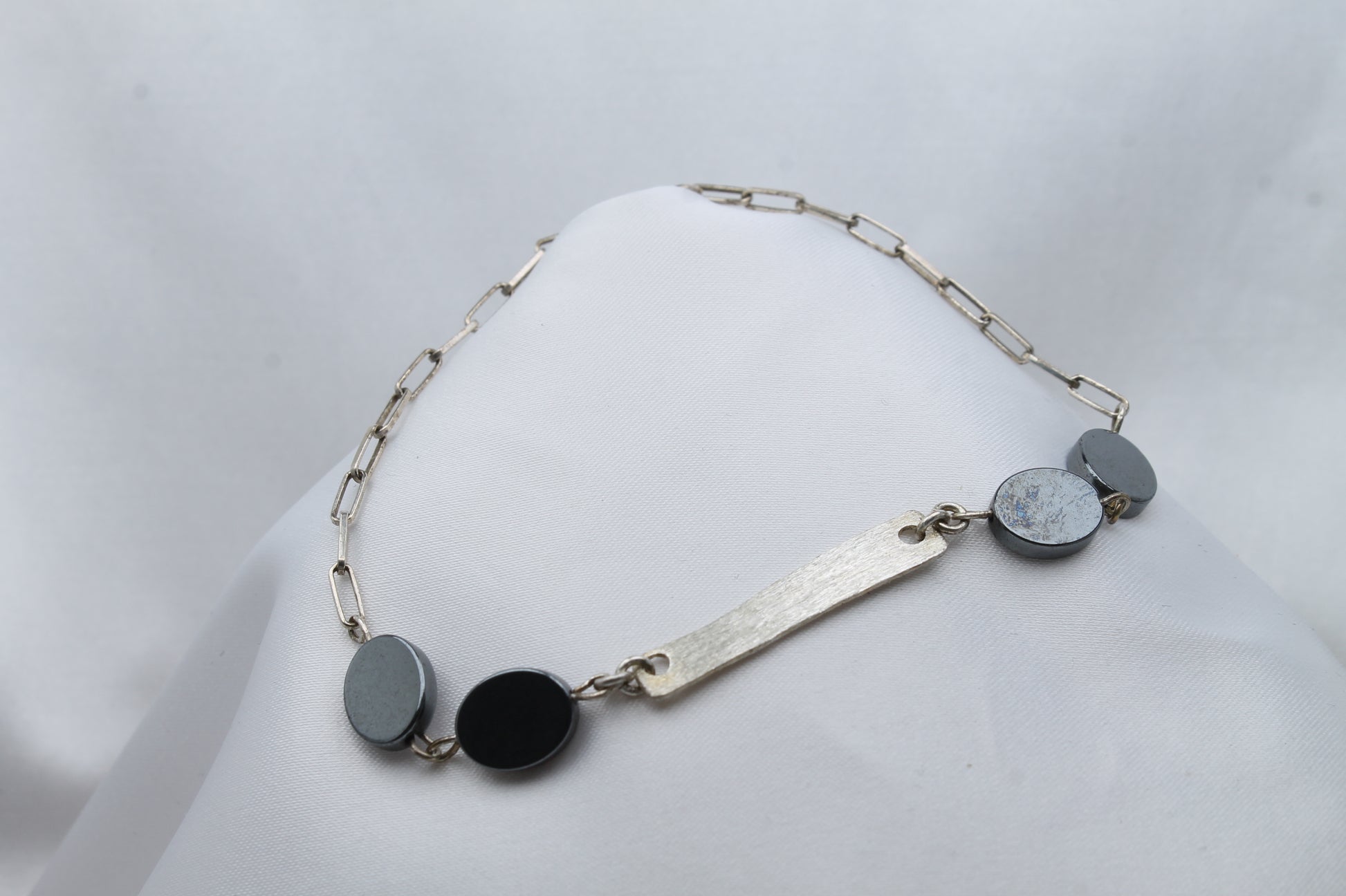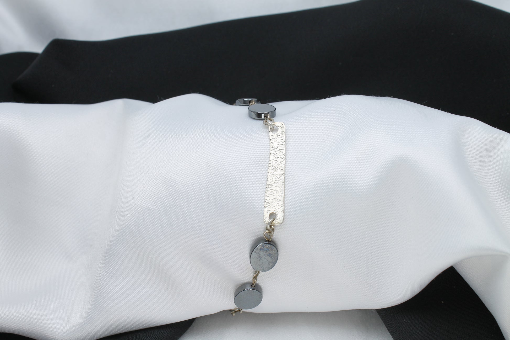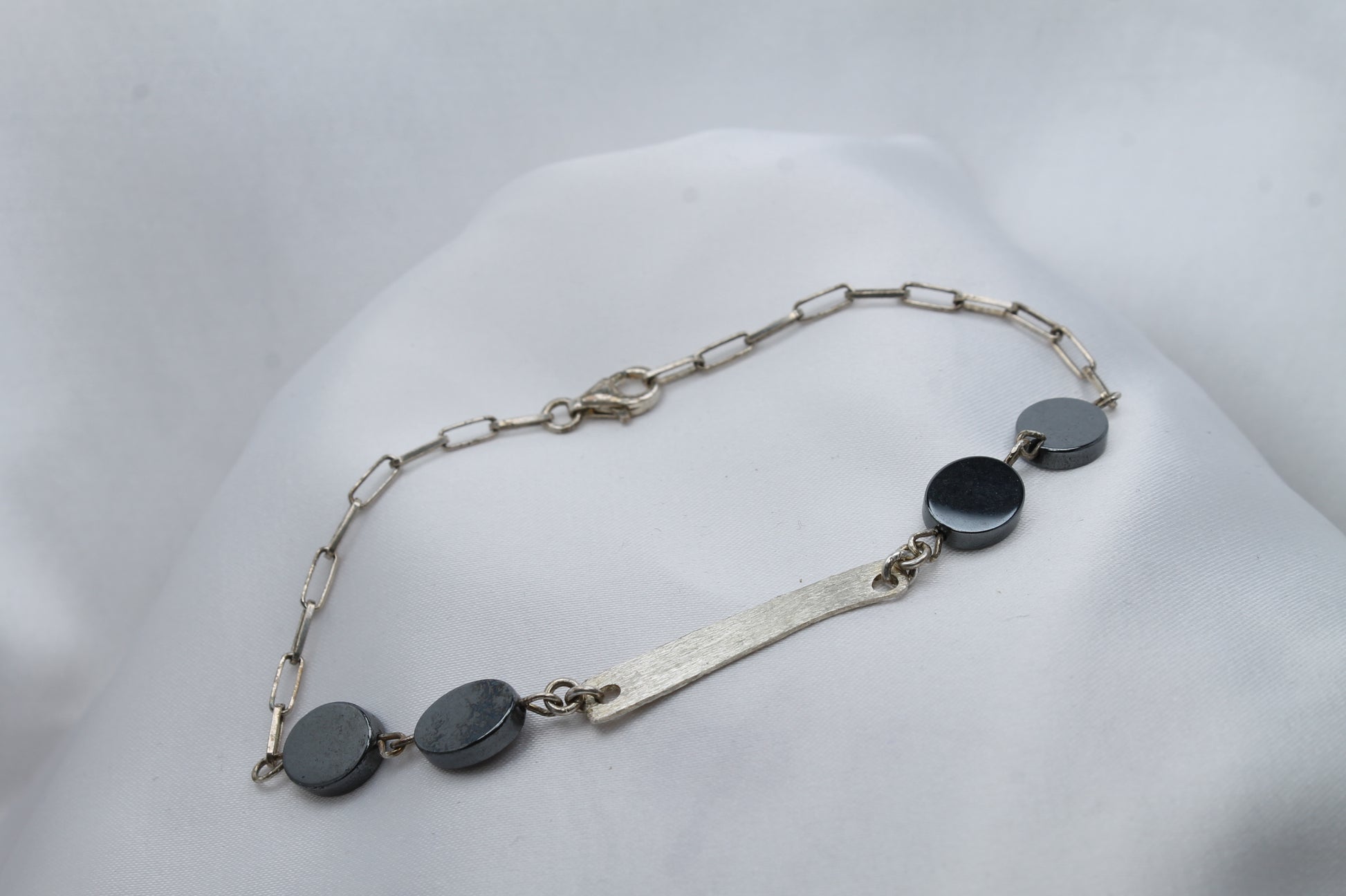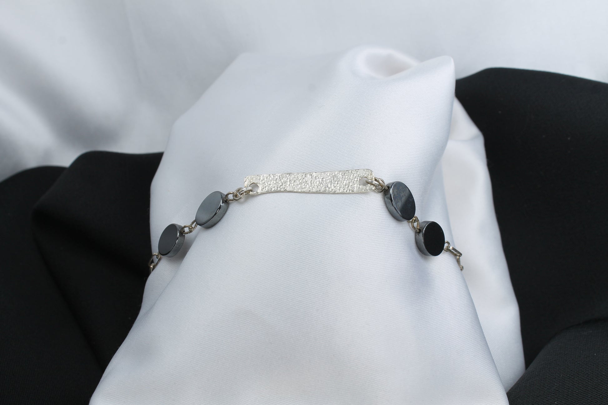 Βραχιόλι χειροποίητο τύπου ταυτότητας από ασήμι, σφυρηλατημένο, με ενεργειακή ορυκτή πέτρα αιματίτη, Μοντέρνο Σχέδιο (VR0392)