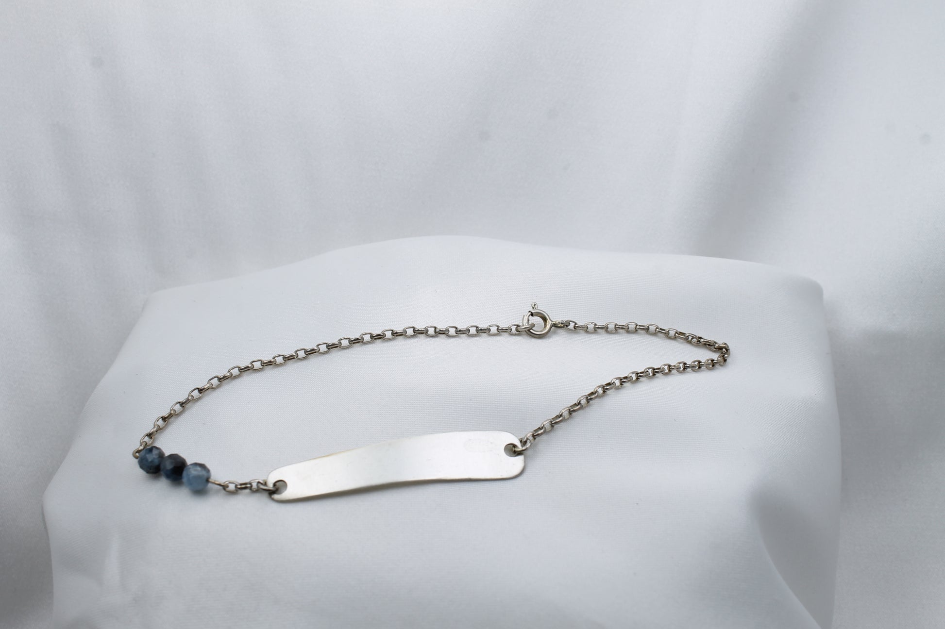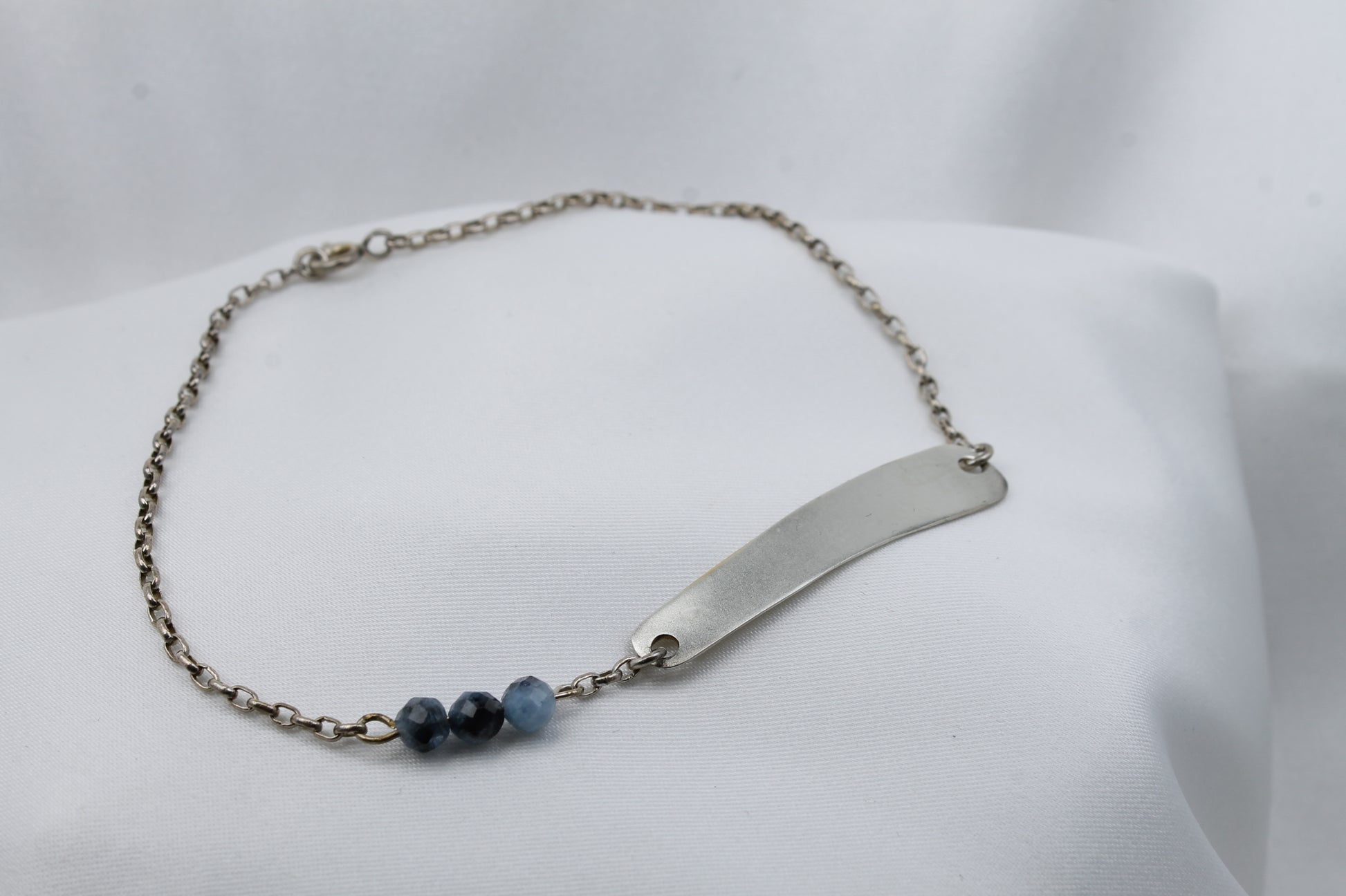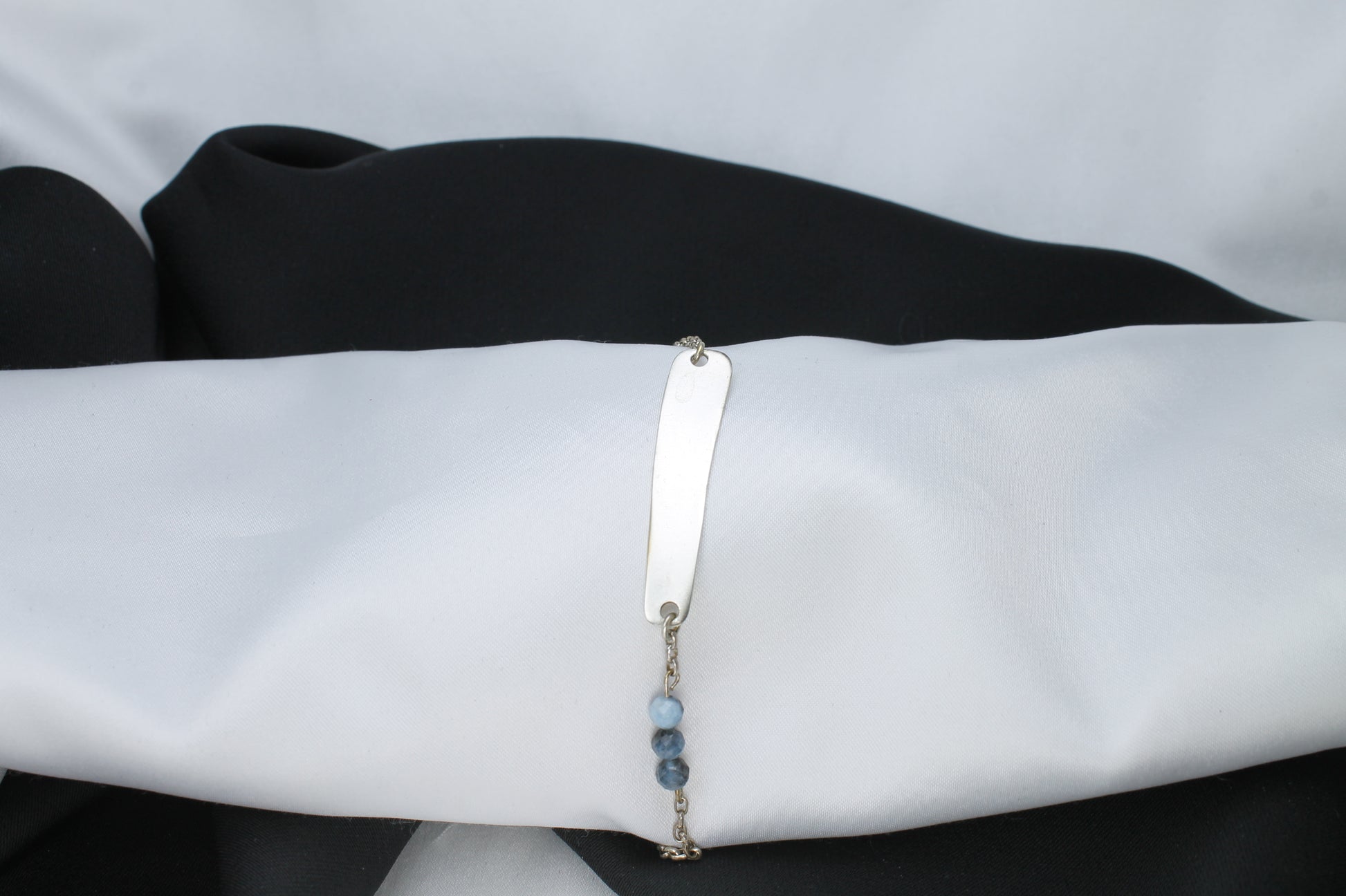 Βραχιόλι χειροποίητο τύπου ταυτότητας από ασήμι, με ενεργειακή ορυκτή πέτρα aquamarine, Μοντέρνο Σχέδιο (VR0398)