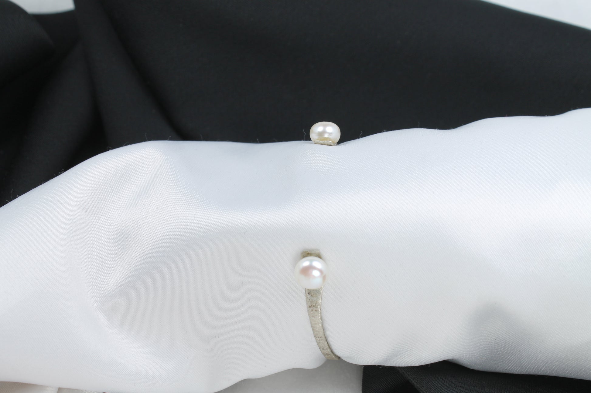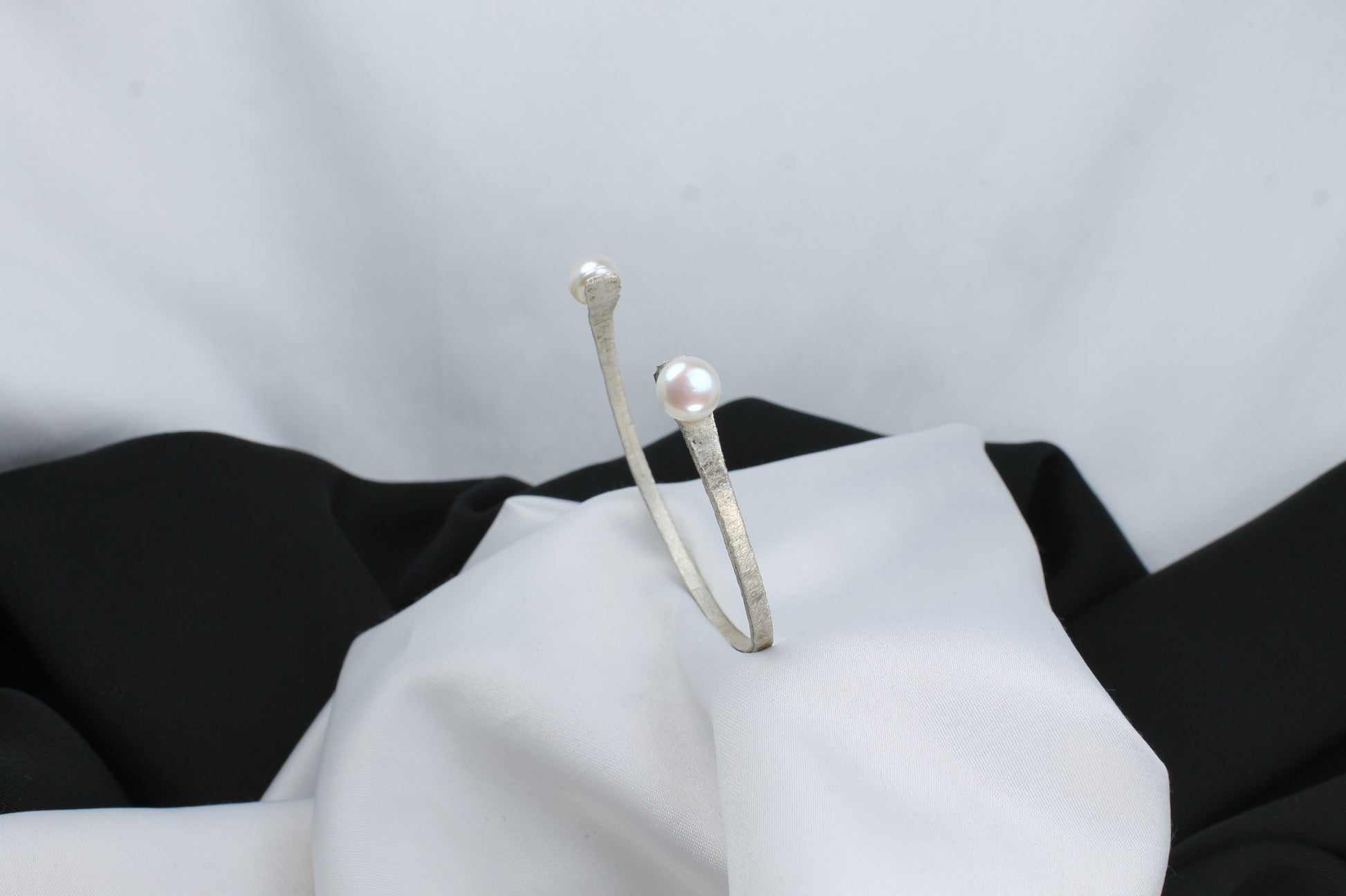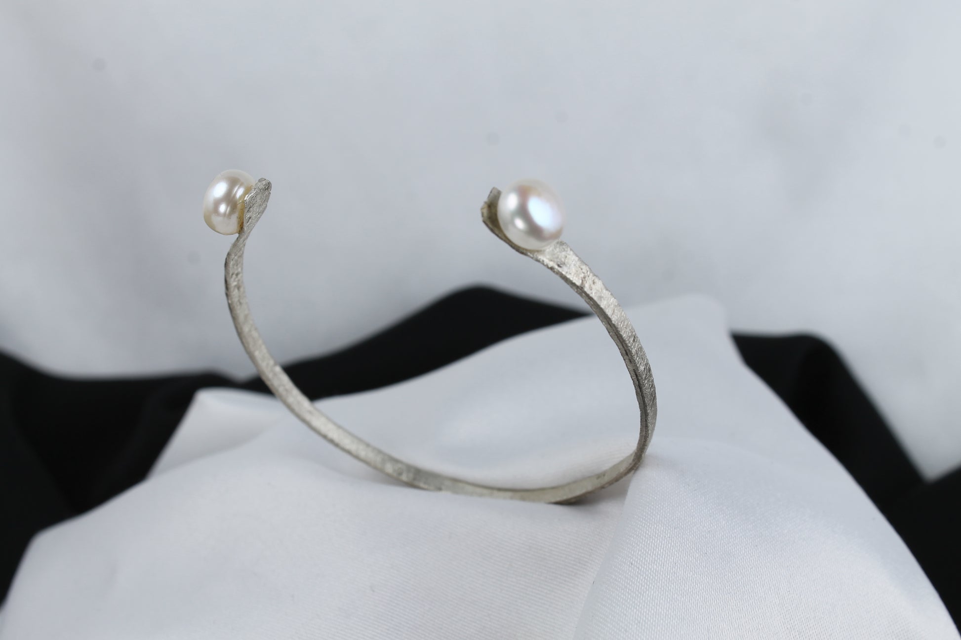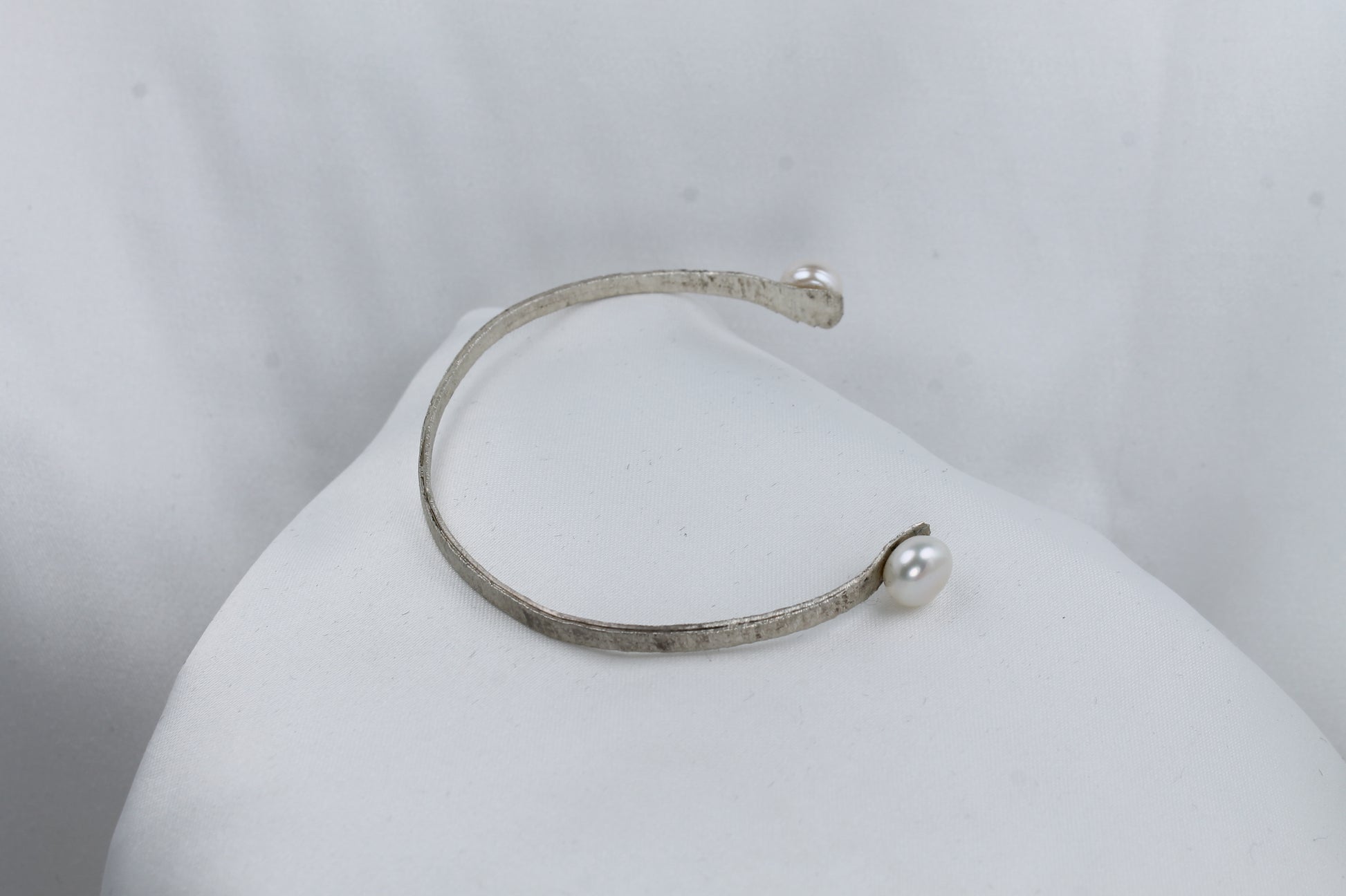 Βραχιόλι χειροποίητο από ασήμι, σατινέ με φυσικό μαργαριτάρι γλυκού νερού, Μοντέρνο Σχέδιο (VR0395)