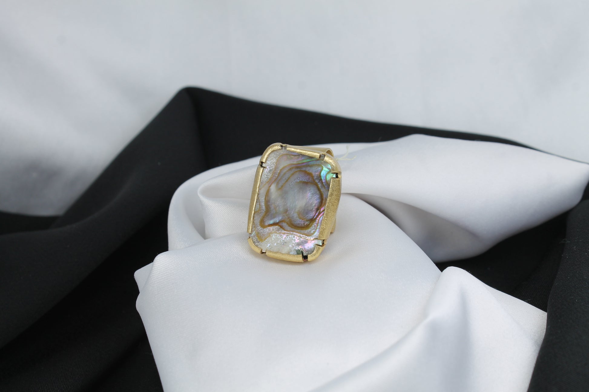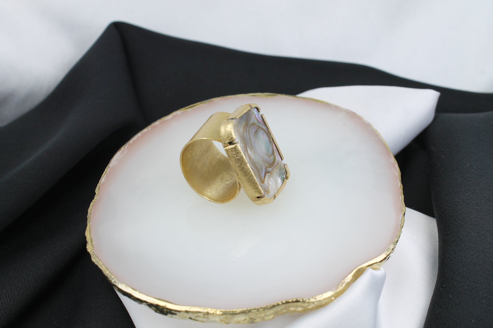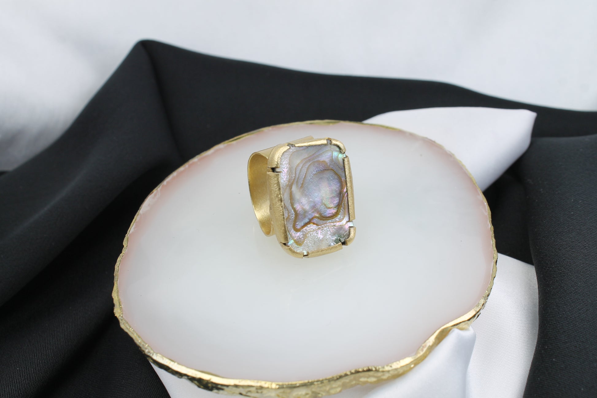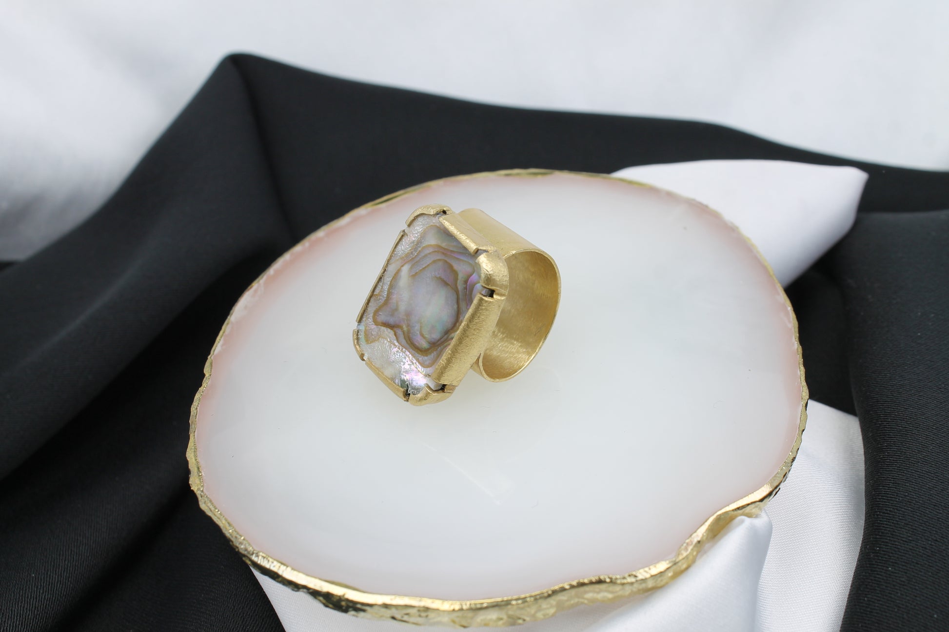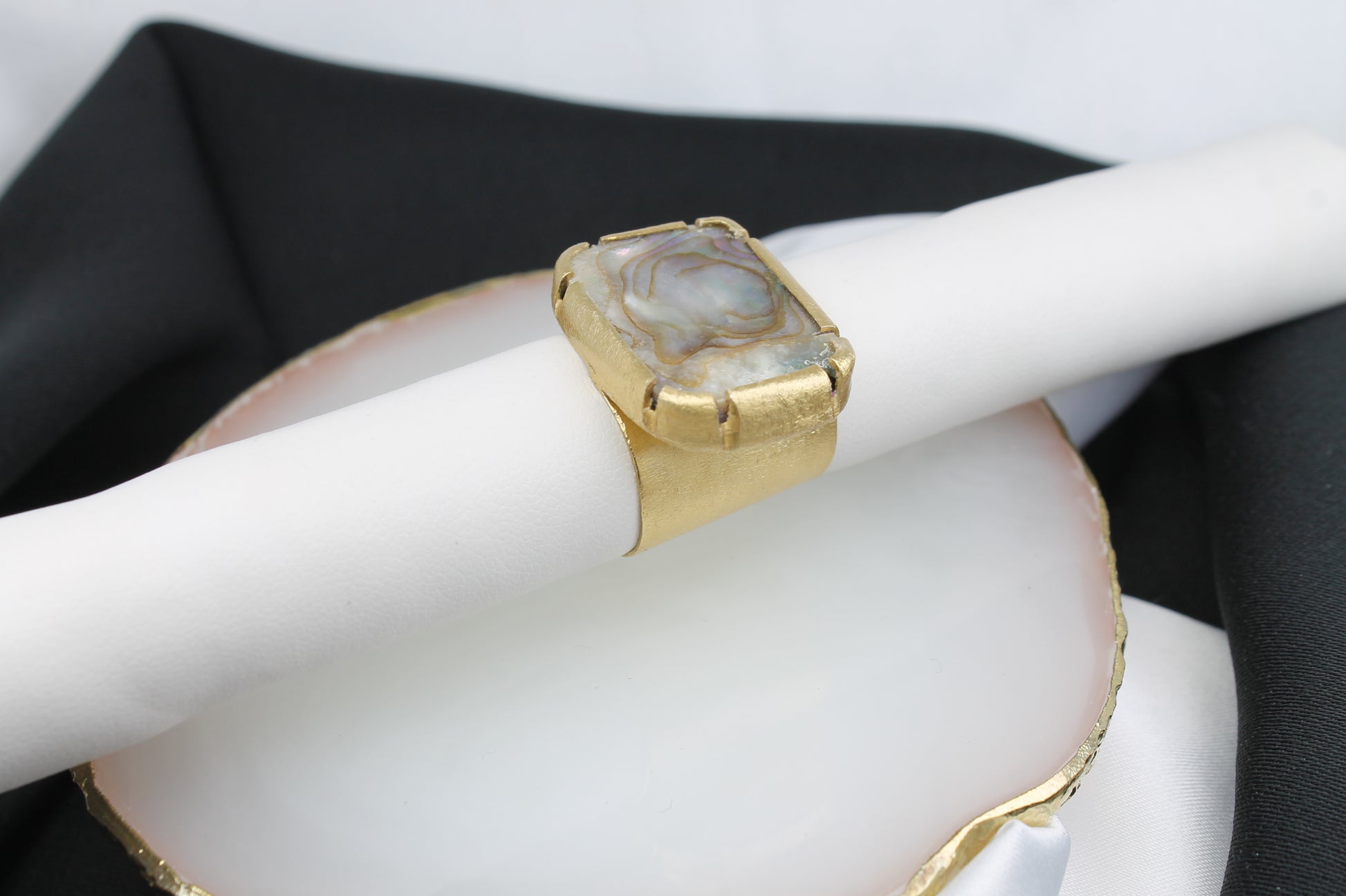 Δαχτυλίδι χειροποίητο από ασήμι,επιχρυσωμένο 18k, με φυσικό αμπαλόνι όστρακο, κλασικό σχέδιο (DA0391)