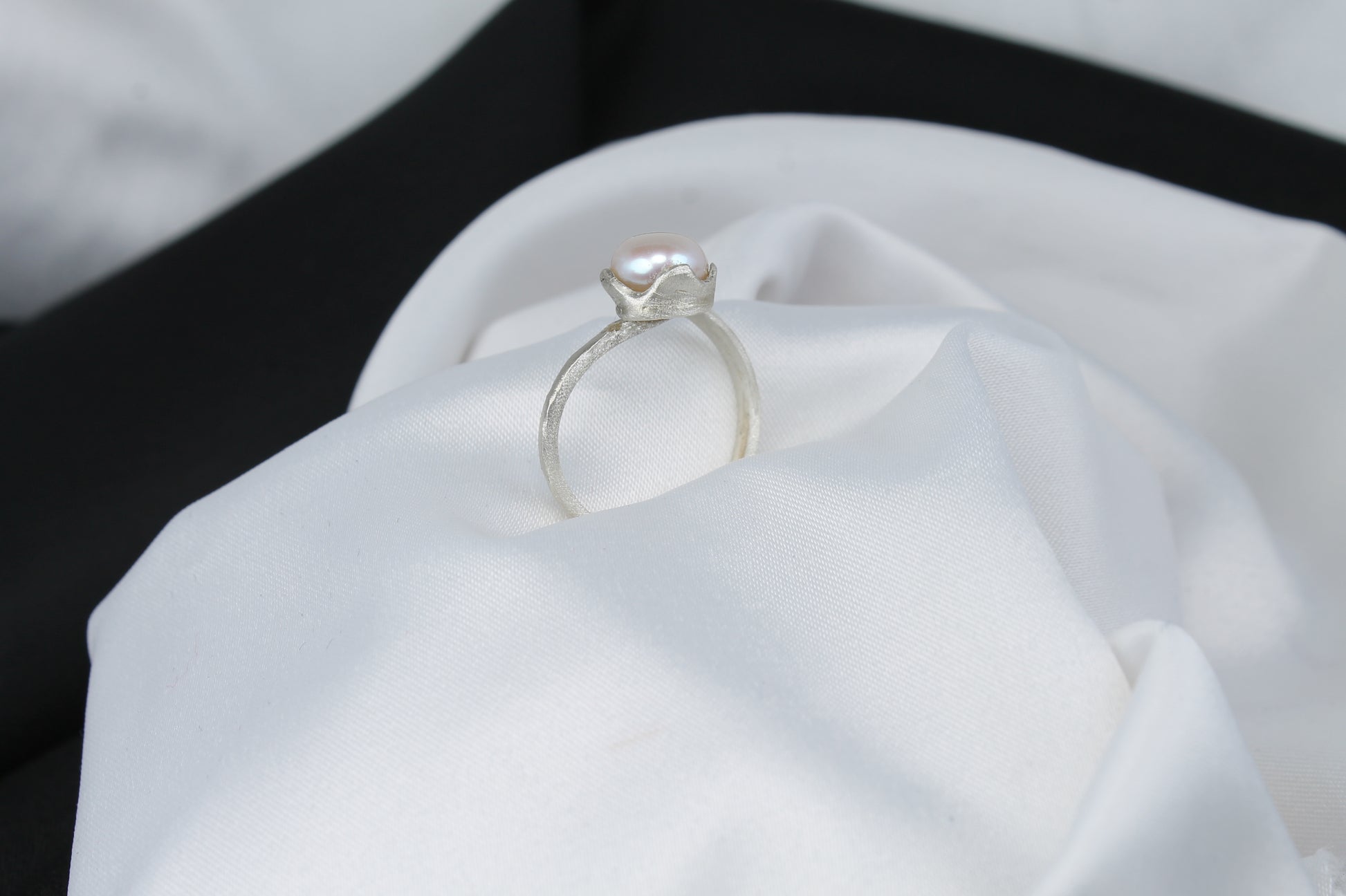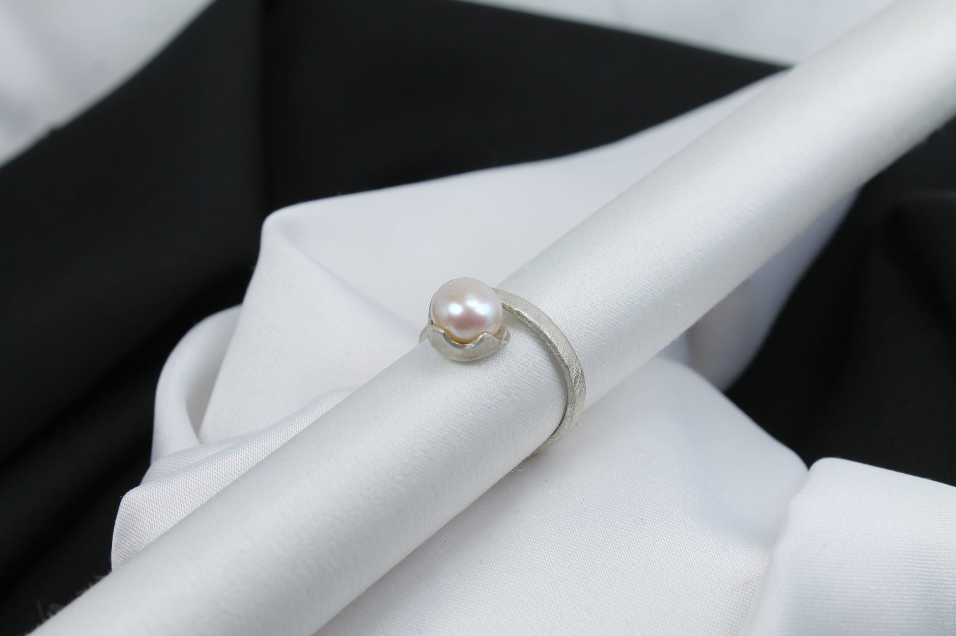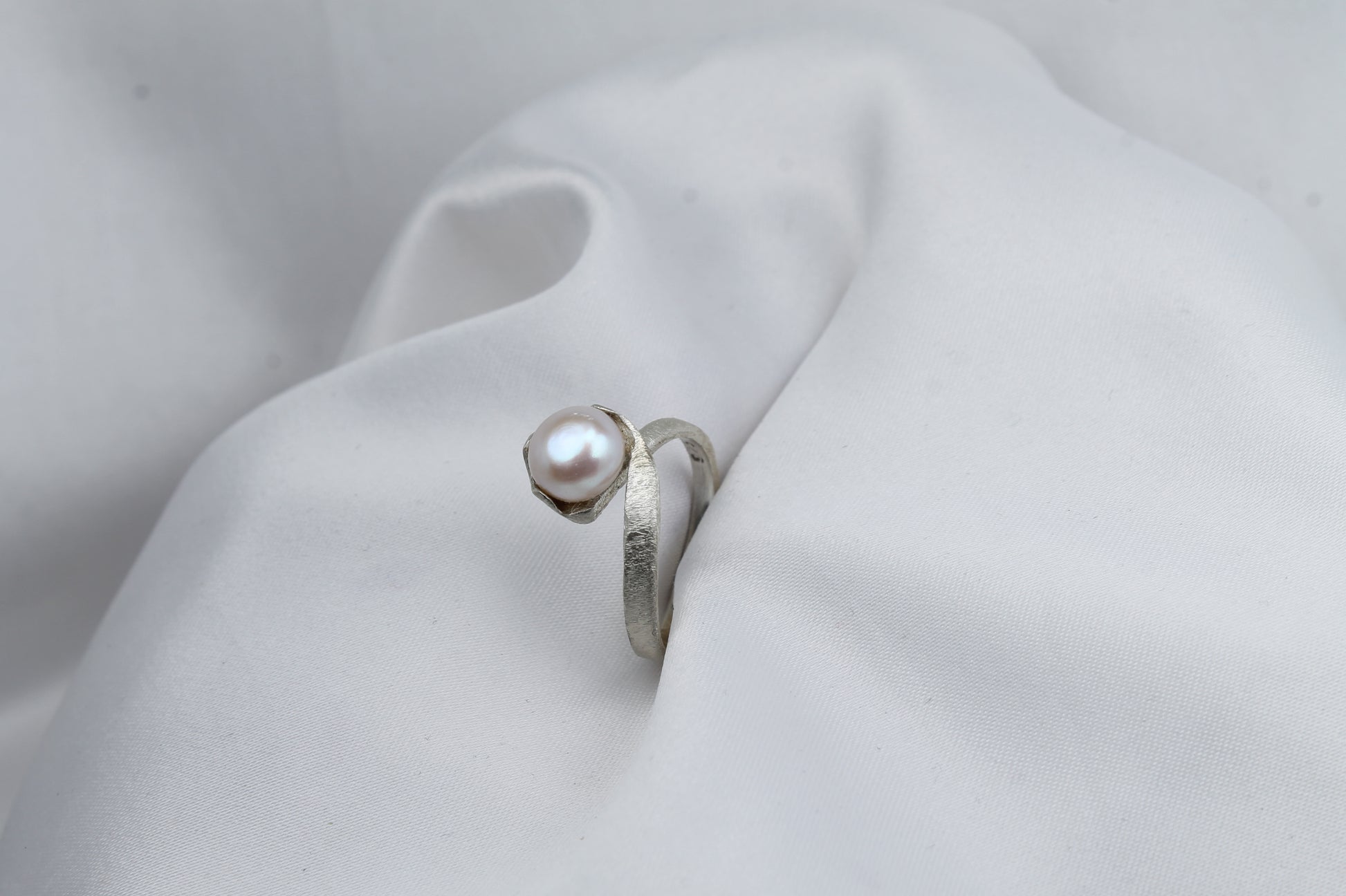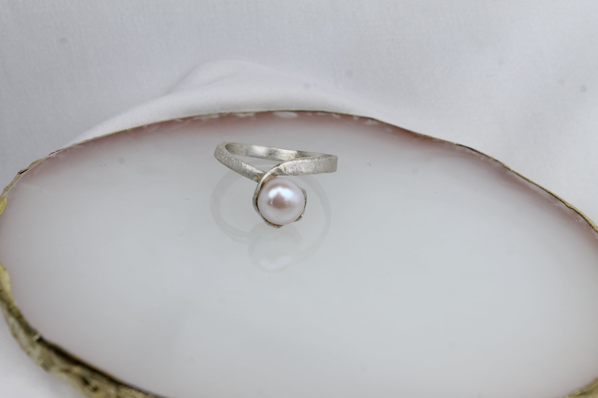 Δαχτυλίδι χειροποίητο από ασήμι, με φυσικό μαργαριτάρι γλυκού νερού, κλασικό σχέδιο (DA0385)