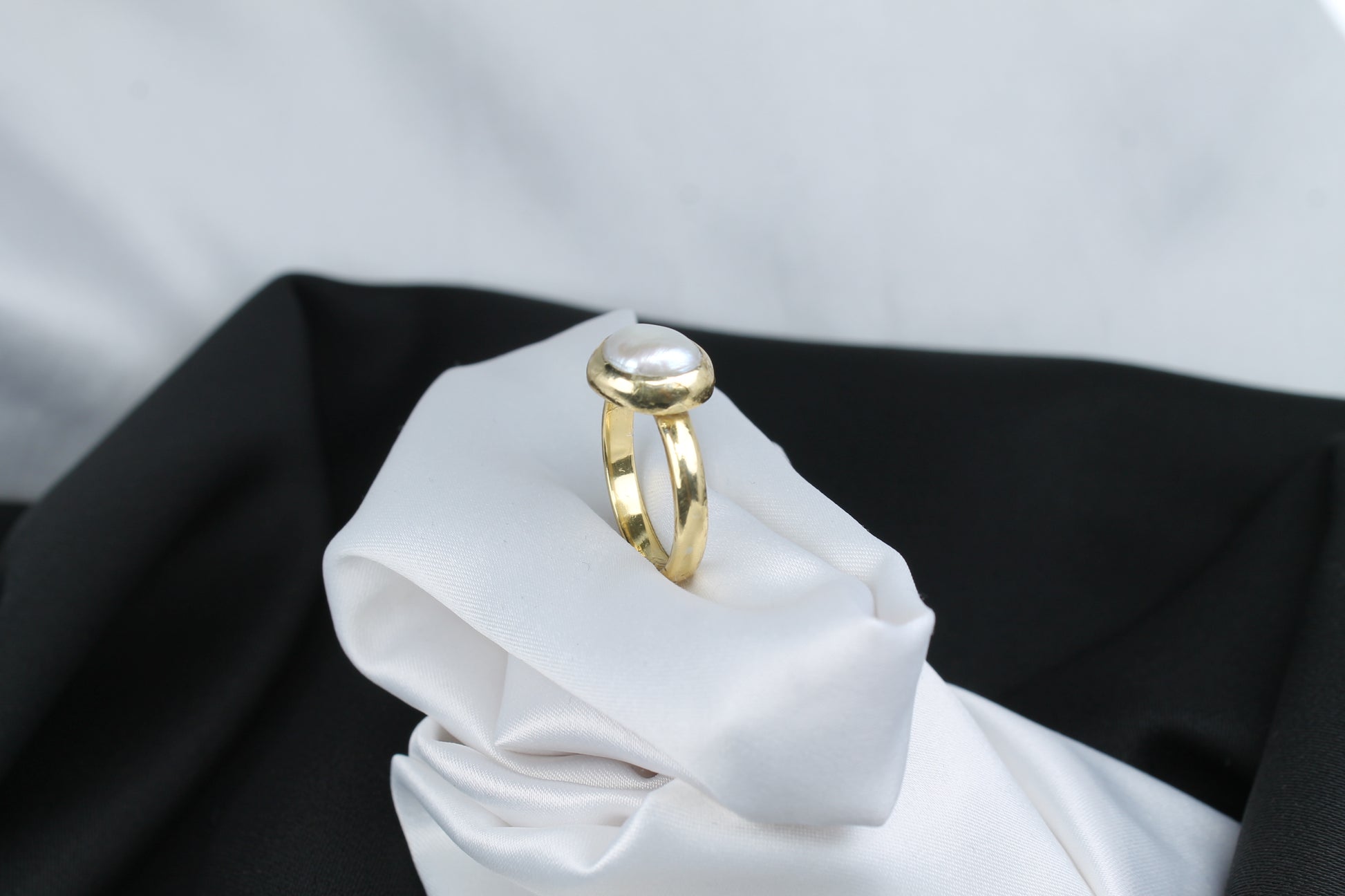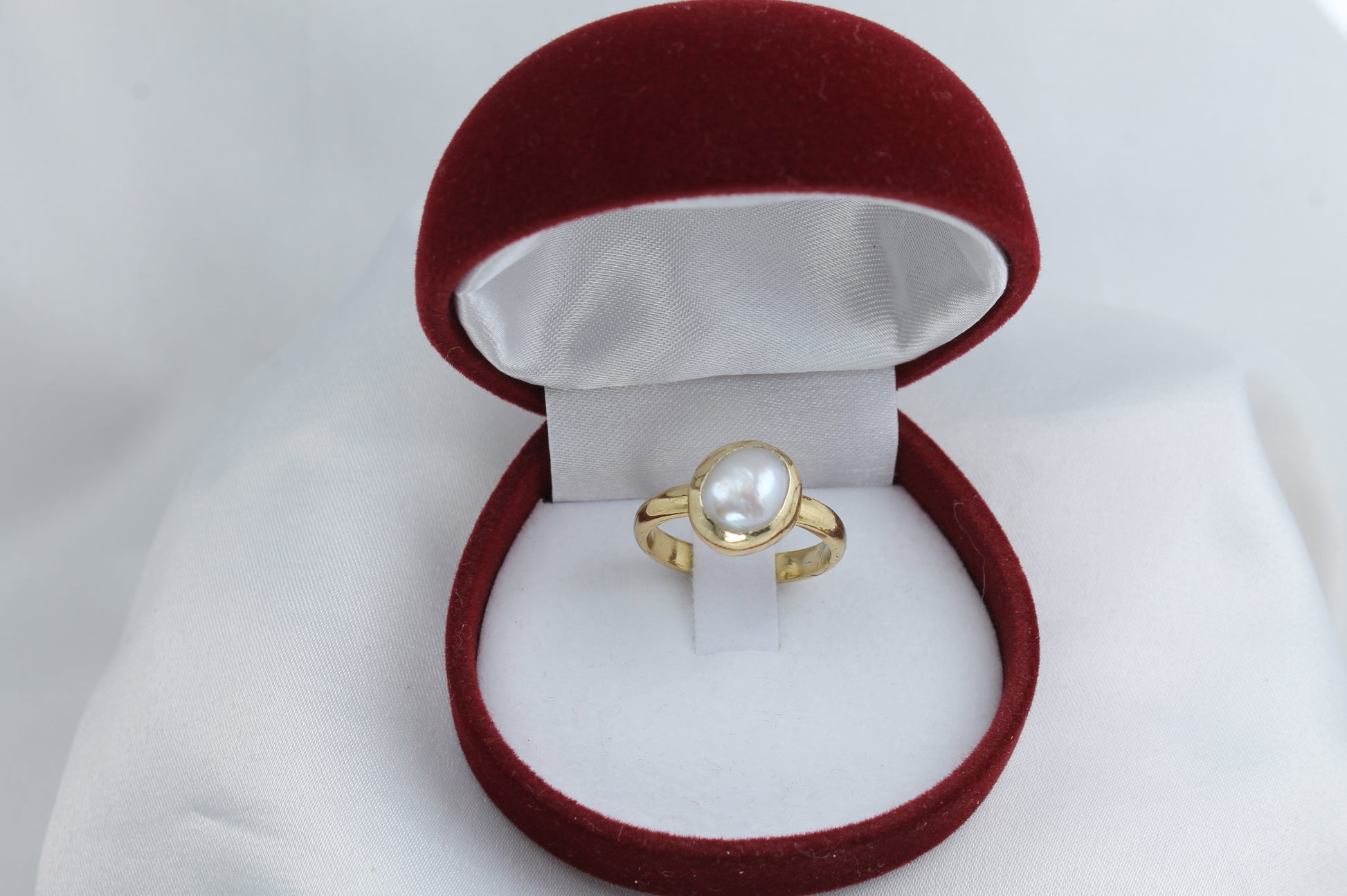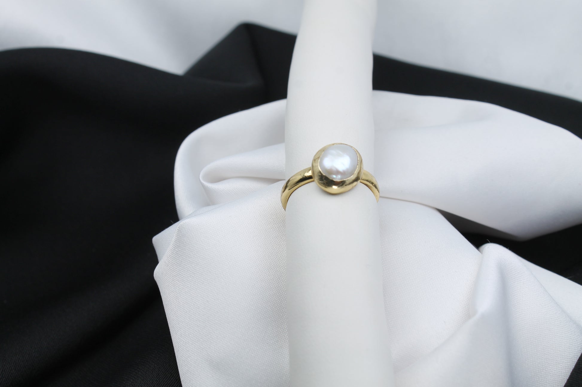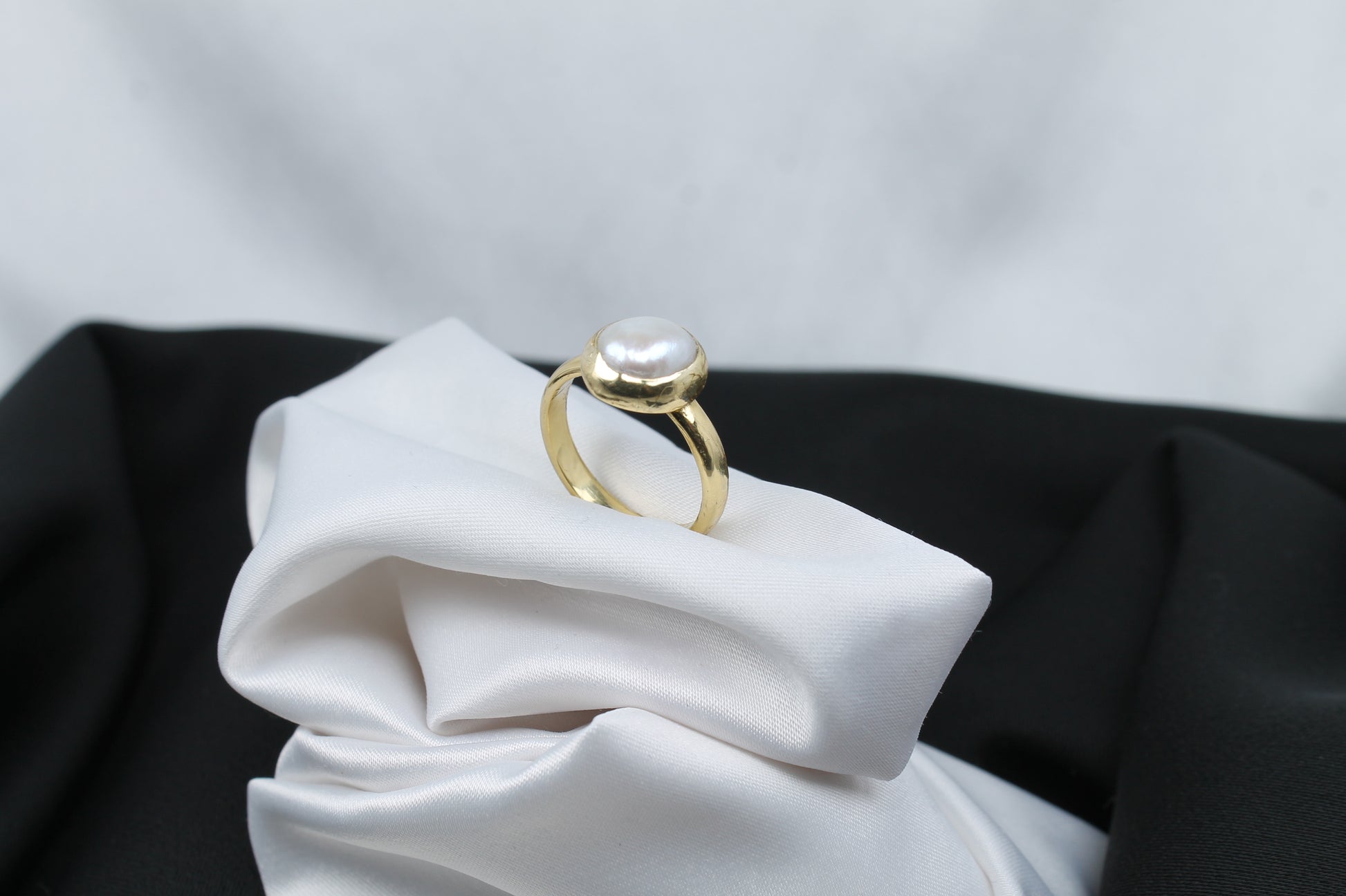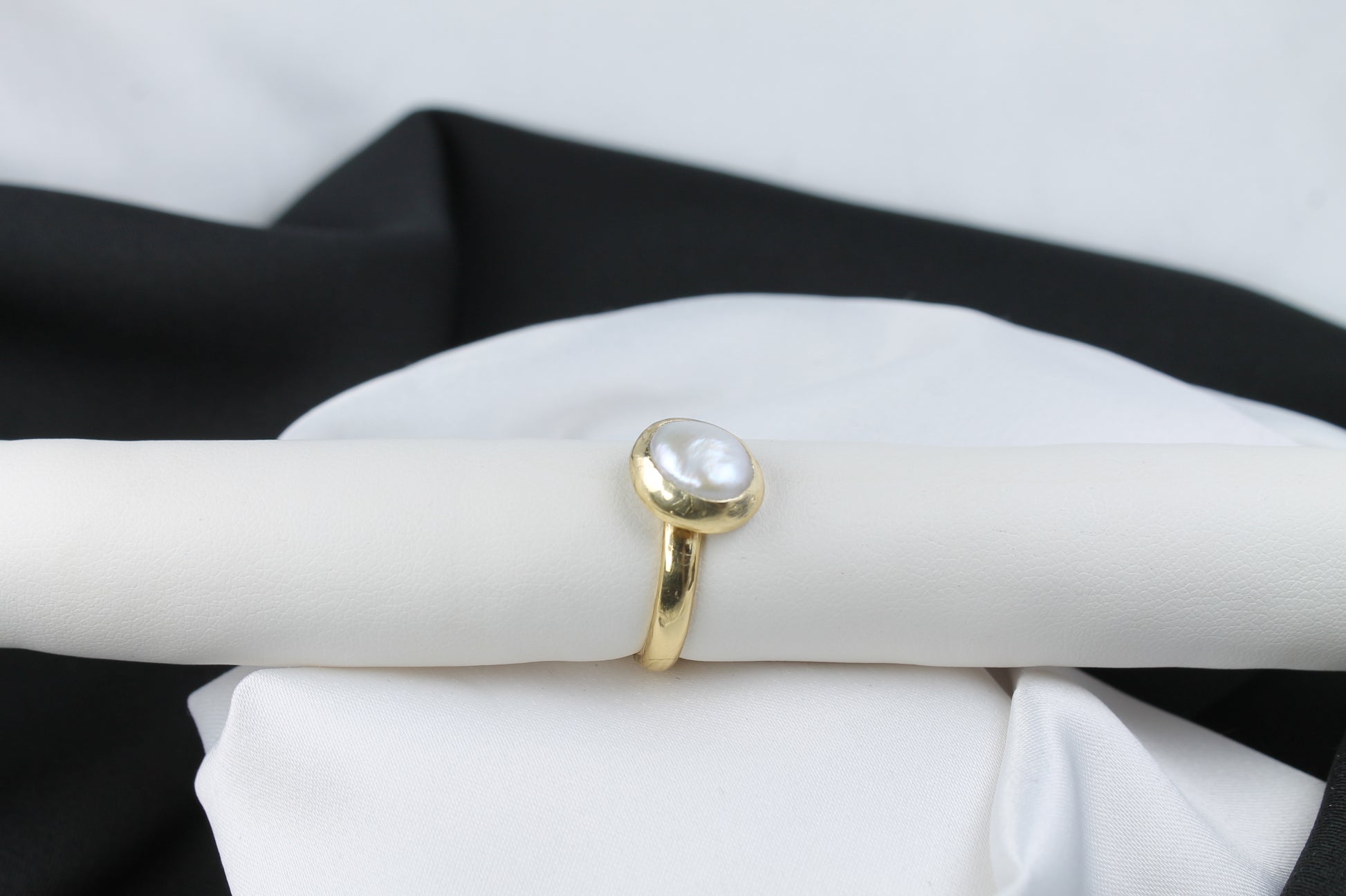 Δαχτυλίδι χειροποίητο από ασήμι, επιχρυσωμένο 18k, με Φυσικό μαργαριτάρι γλυκού νερού, κλασικό σχέδιο (DA0056)