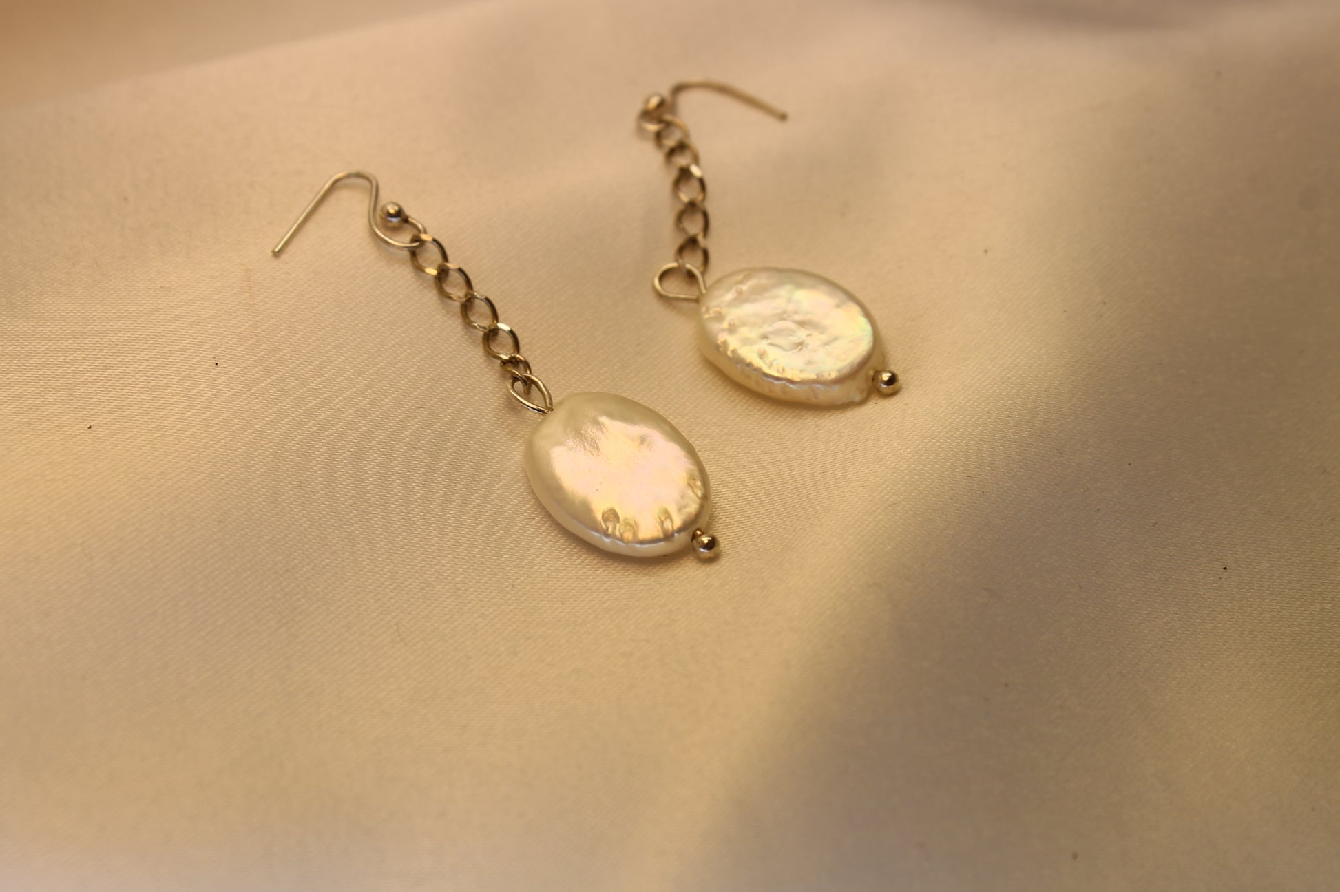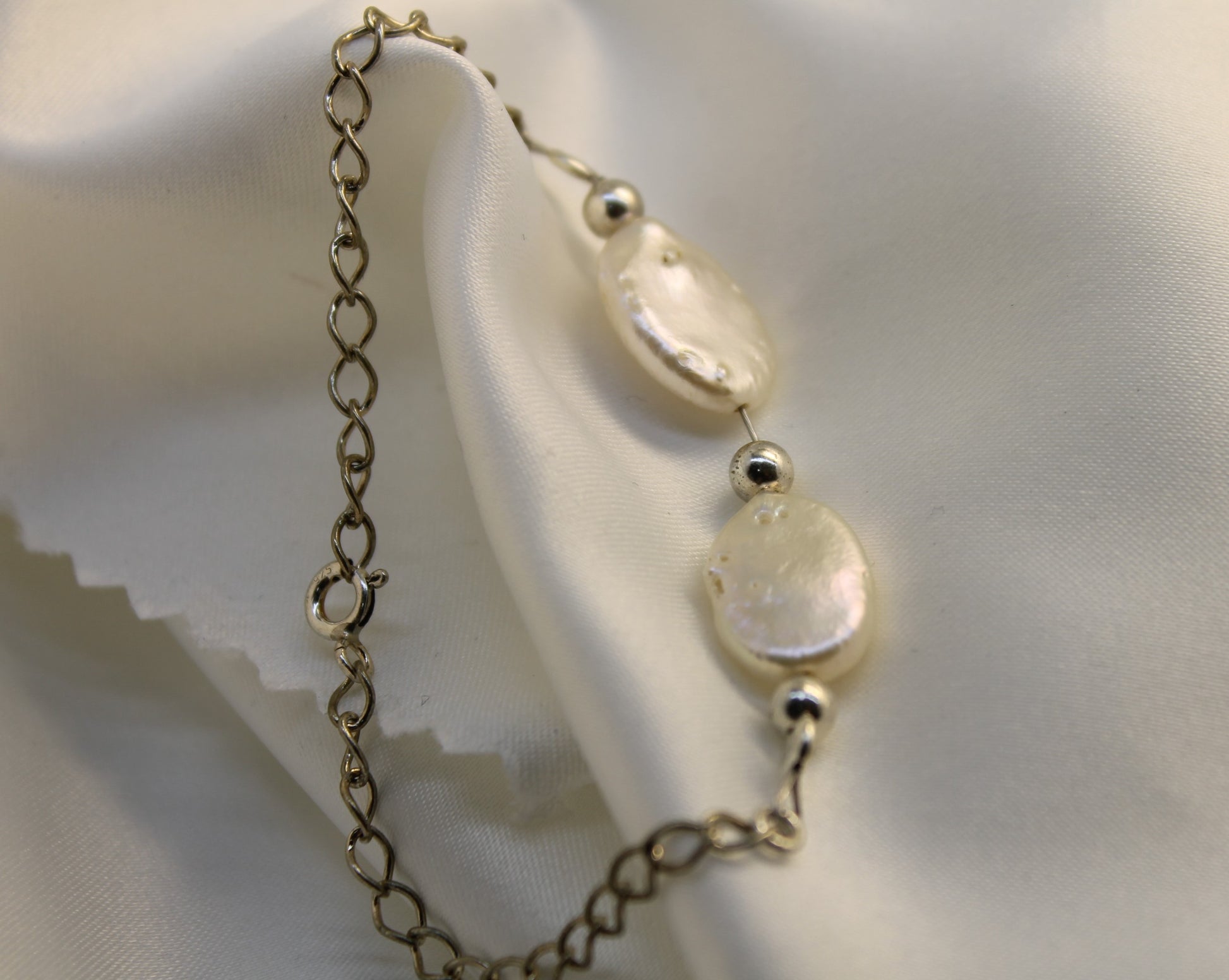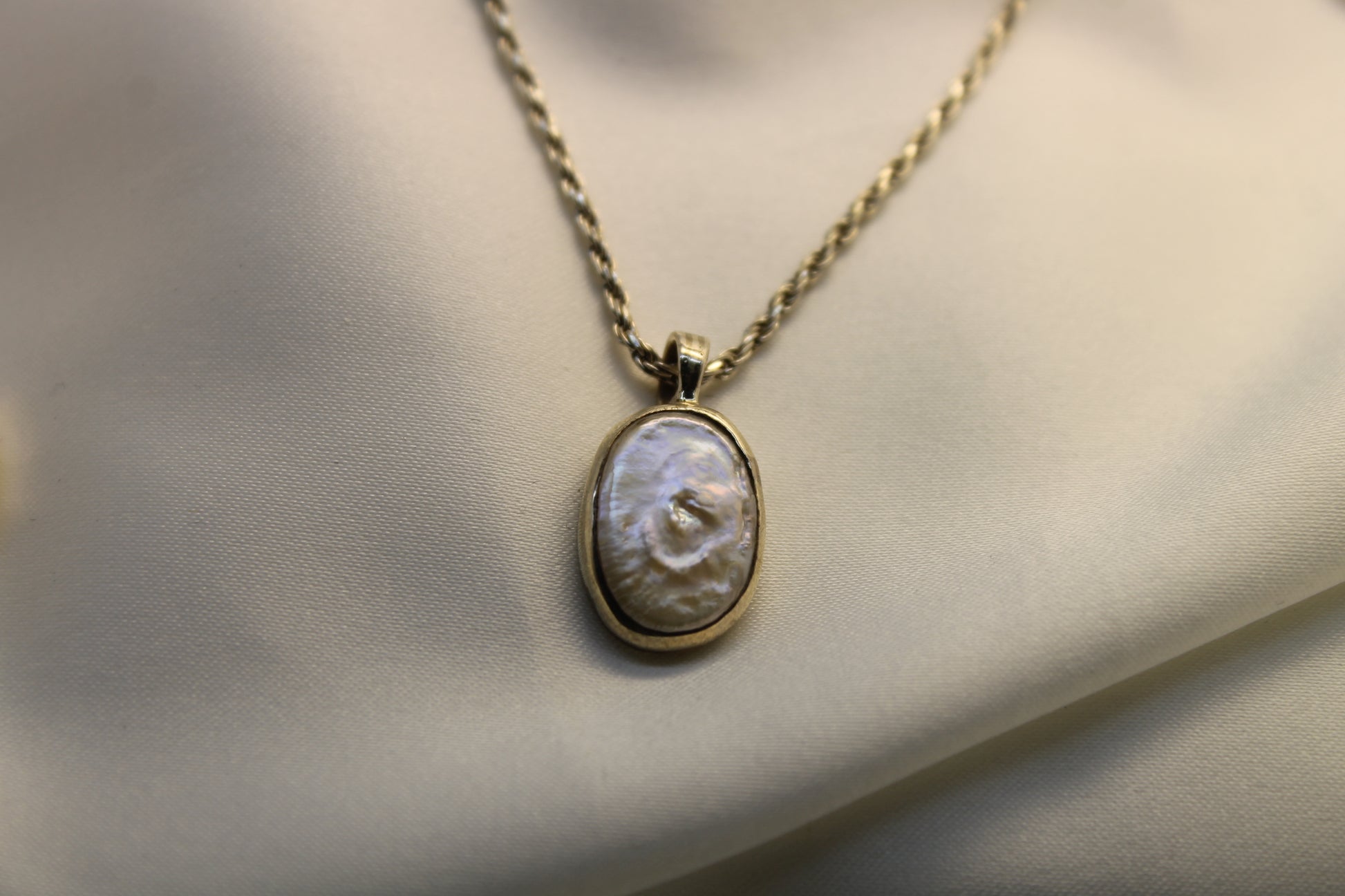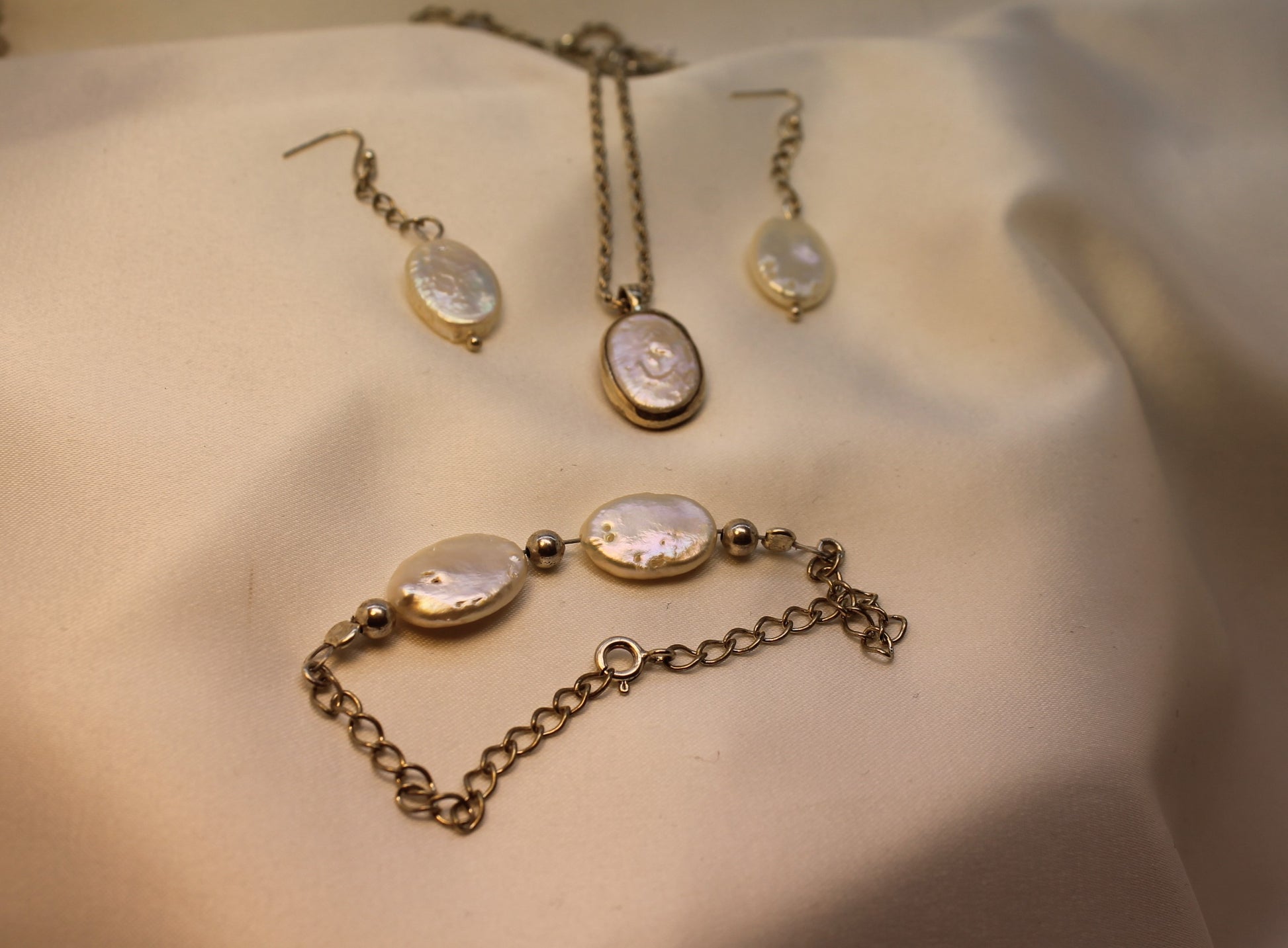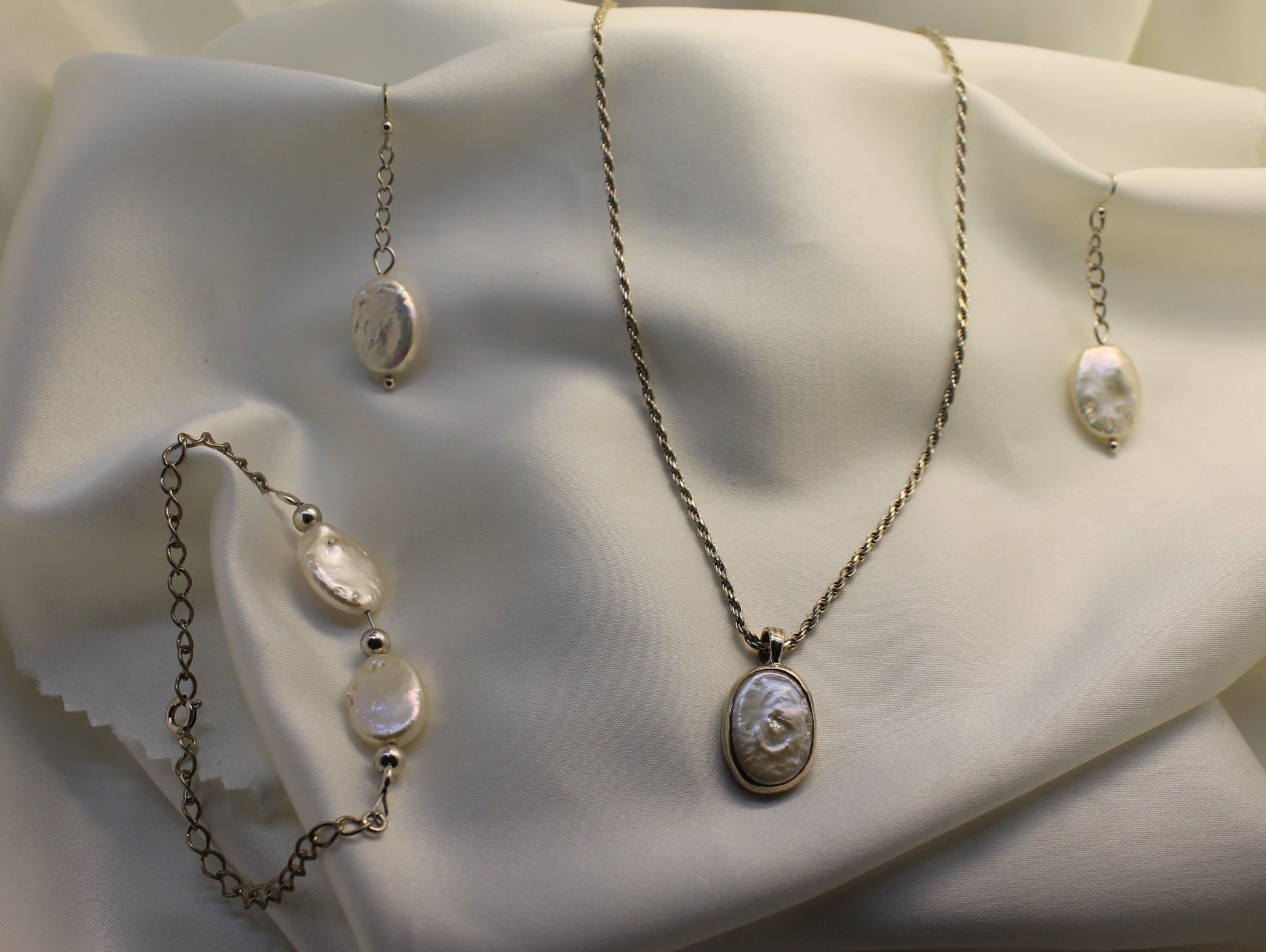 Σετ χειροποίητο από ασήμι, με φυσικό πλακέ μαργαριτάρι γλυκού νερού, κλασικό σχέδιο (SET0358)